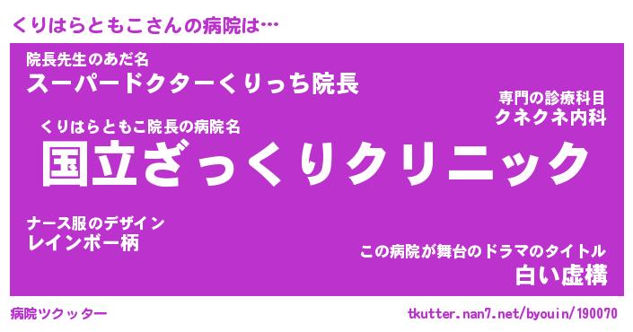 | 肩書あだ名 | 『くりはらともこ社長令嬢』 |