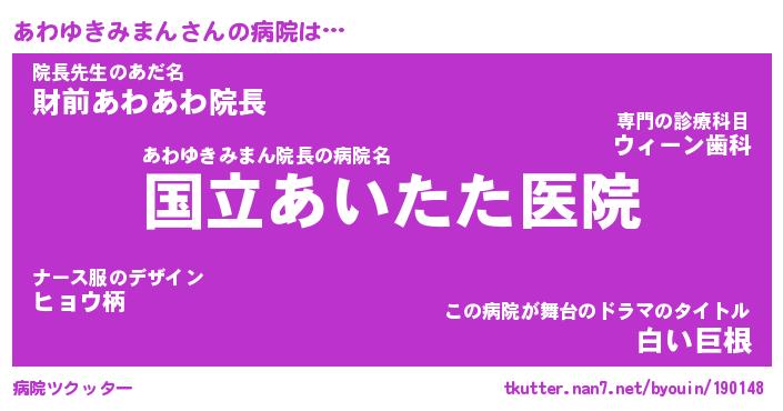 | 伝説のあだ名 | 『伝説のスナイパーあわゆきみまん』 |