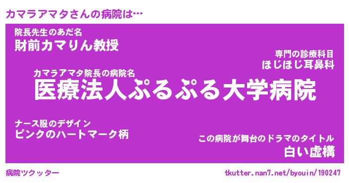 | ヘコむあだ名 | 『カマふぇ~』『酢こんぶ』『カマを』 |