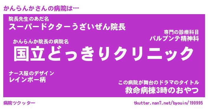 | 伝説のあだ名 | 『伝説のスナイパーかんらんか』 |