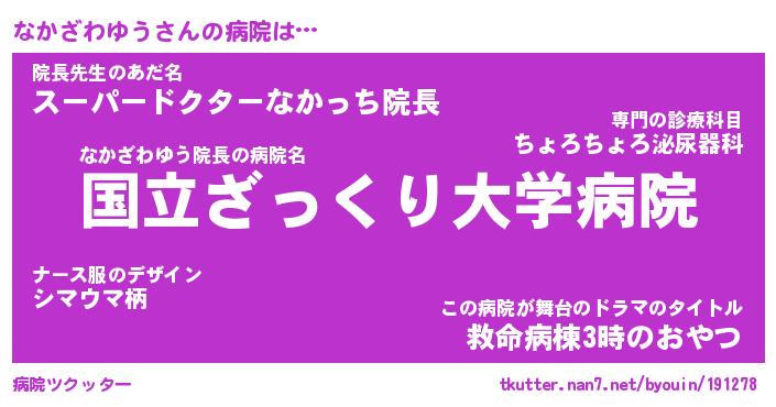 | 女子向けラノベタイトル風あだ名 | 『(仮)なかざわゆうのやんごとなき事情』 |