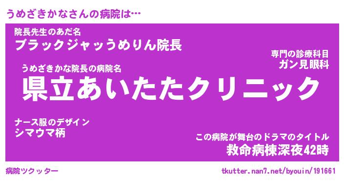 | ヘコむあだ名 | 『うめっふぃ~』『なまこ酢』 |