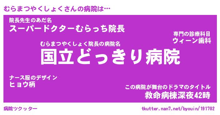 伝説のあだ名 | 『伝説のスナイパーむらまつやくしょく』 |