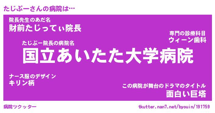 | 意味不明あだ名 | 『ペロリンたじぷー』『永久保存たじぷー』 |