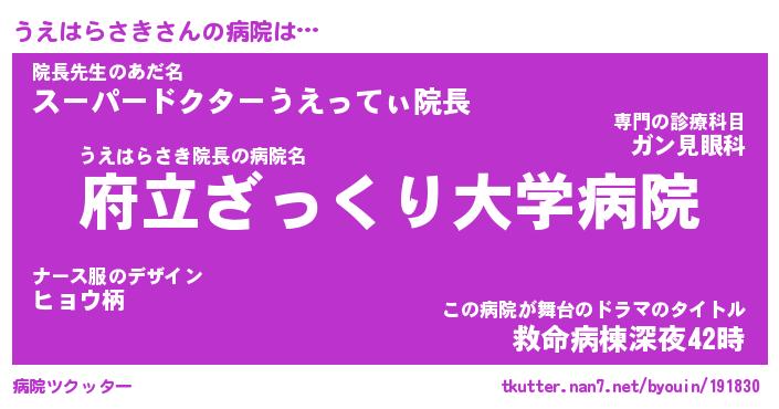 | ヒーロー風カッコイイあだ名 | 『スーパーウエハラサキ』『銀牙騎士ウエ』 |