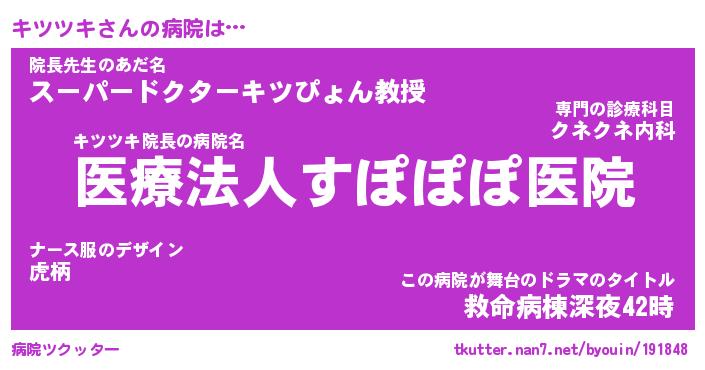 | ポケモン風あだ名 | 『キツチュウ』『キツツダネ』 |