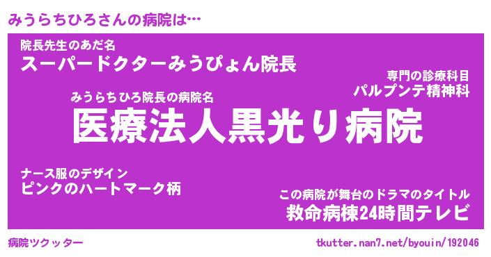 | ヒーロー風カッコイイあだ名 | 『スーパーミウラチヒロ』『暗黒騎士ミウ』 |