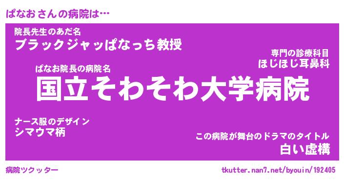 | ポケモン風あだ名 | 『パナチュウ』『パナオダネ』 |