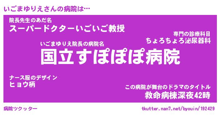 | 男性向けラノベタイトル風あだ名 | 『いごまゆりえの憂鬱』 |