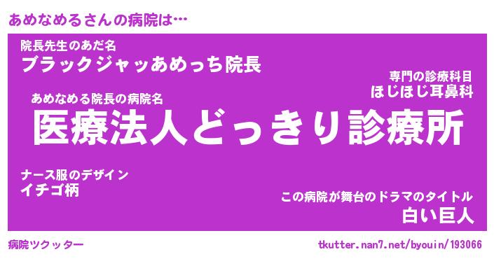 | ファンタジー風あだ名 | 『アメフェル』『エターナルアメナメルー』 |