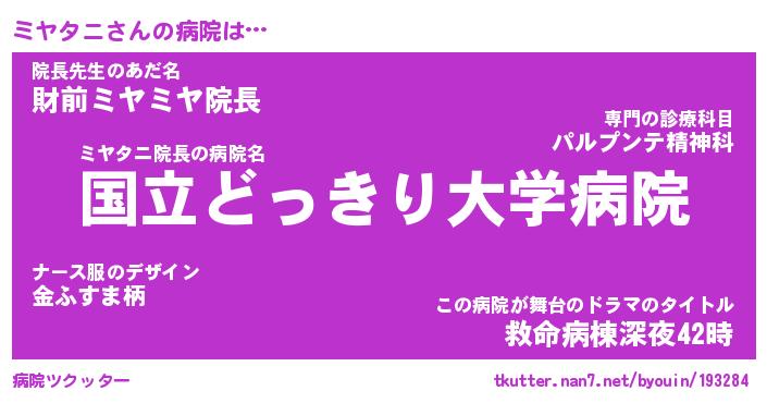 | ファンタジー風あだ名 | 『ミヤフェル』『エターナルミヤタニー』 |