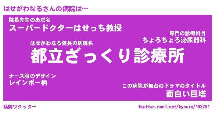 | ピコ太郎風あだ名 | 『ハコ六郎』『ピハ次郎』『ハセ史郎』 |