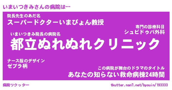 | ポケモン風あだ名 | 『イマチュウ』『イマイダネ』 |