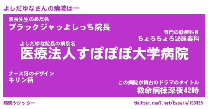 | ファンタジー風あだ名 | 『ヨシフェル』『エターナルヨシダユナー』 |