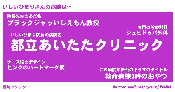 | 2回繰り返すあだ名 | 『いしいし』『いいしし』『おやおや』 |