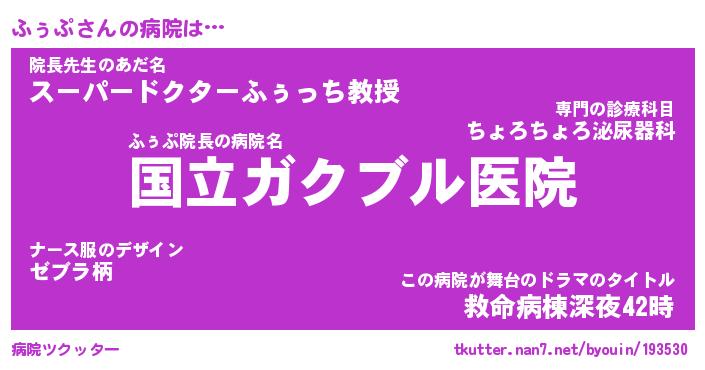 | 男性向けラノベタイトル風あだ名 | 『ふぅぷの憂鬱』 |
