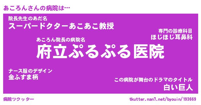 | 意味不明あだ名 | 『ペロリンあころん』『永久保存あころん』 |