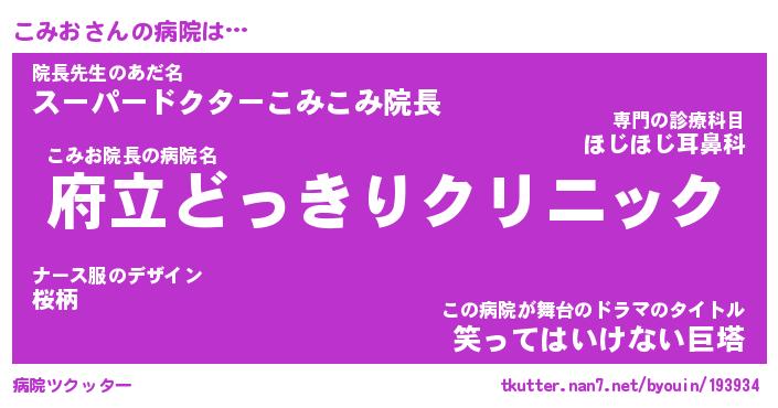 | 意味不明あだ名 | 『ペロリンこみお』『こみおフォーエバー』 |