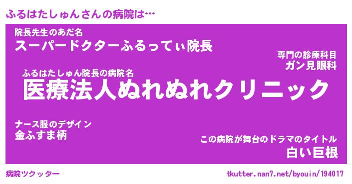 | 胡散臭い通販商品みたいなあだ名 | 『億万長者になれる霊験あらたかなお札…その名も「ふるはたしゅん」』 |