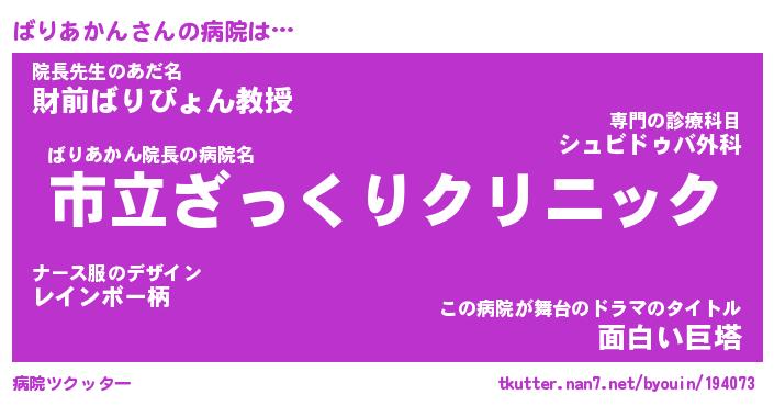 | ファンタジー風あだ名 | 『バリフェル』『エターナルバリアカンー』 |