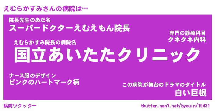 | 胡散臭い通販商品みたいなあだ名 | 『必ず成功する霊験あらたかなお札…その名も「えむらかすみ」』 |
