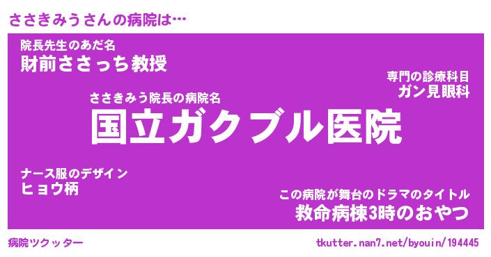 | ファンタジー風あだ名 | 『ササフェル』『エターナルササキミウー』 |