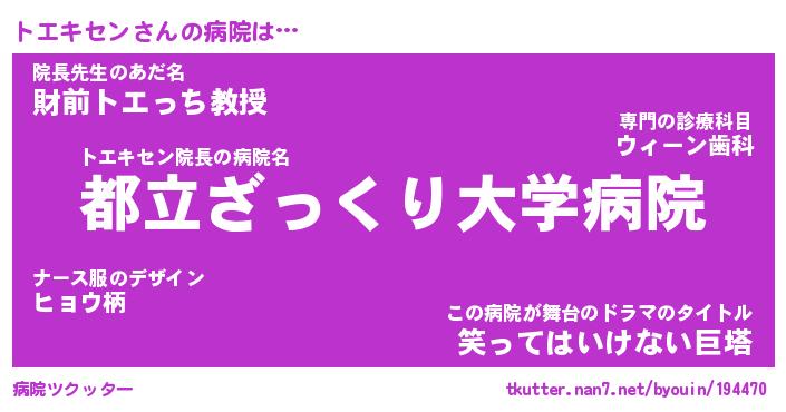 | ヒーロー風カッコイイあだ名 | 『スーパートエキセン』『銀牙騎士トエ』 |