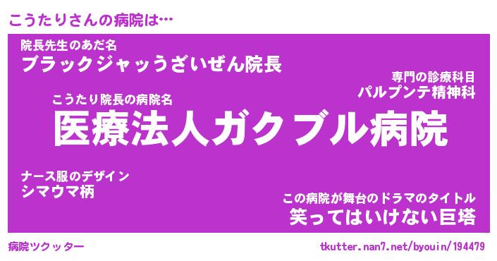 | 2回繰り返すあだ名 | 『こうこう』『ここうう』『ことこと』 |