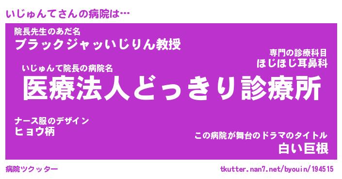 | 肩書あだ名 | 『いじゅんて御曹司』『いじゅんて大統領』 |