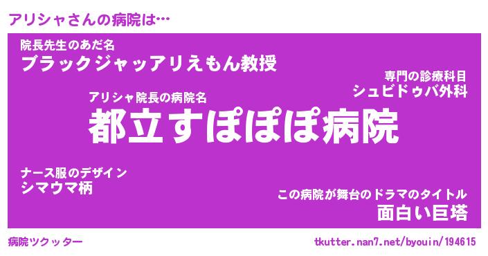 | 2回繰り返すあだ名 | 『アリアリ』『アアリリ』『ぬれぬれ』 |