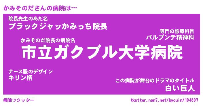 | ヘコむあだ名 | 『かみにゅー』『なまこ酢』 |