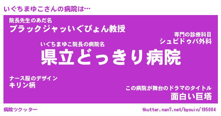 | 肩書あだ名 | 『いぐちまゆこ御曹司』 |