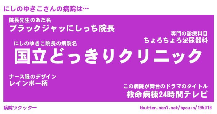 | 肩書あだ名 | 『にしのゆきこ御曹司』 |