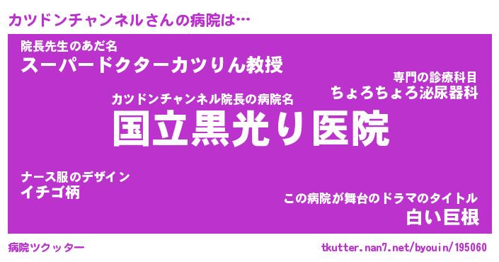 | 男性向けラノベタイトル風あだ名 | 『カツドンチャンネルの憂鬱』 |