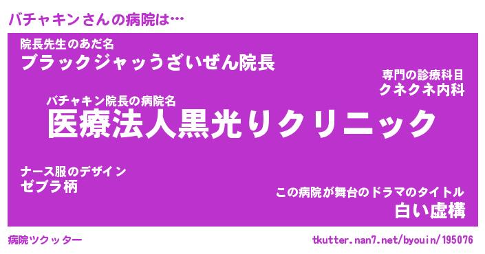 | ヘコむあだ名 | 『バチにー』『なまこ酢』『バチ太郎』 |