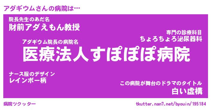 | ポケモン風あだ名 | 『アダチュウ』『アダギダネ』 |