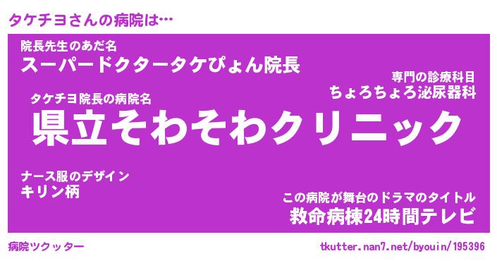 | 意味不明あだ名 | 『ペロリンタケチヨ』『永久保存タケチヨ』 |
