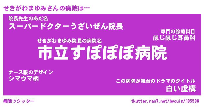 | ヘコむあだ名 | 『せきもー』『なまこ酢』『せき太郎』 |