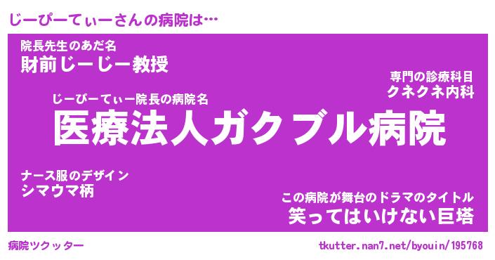 | 欧米人風あだ名 | 『マイケルじーぴーてぃー』 |
