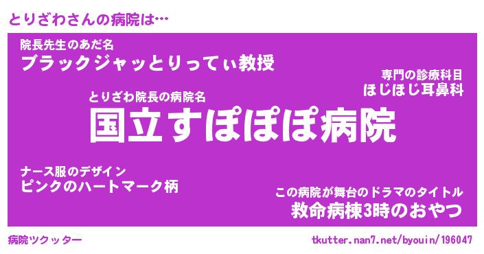 | 男性向けラノベタイトル風あだ名 | 『とりざわの憂鬱』 |