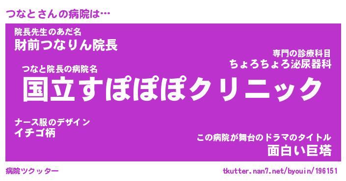 | 2回繰り返すあだ名 | 『つなつな』『つつなな』『ぬめぬめ』 |