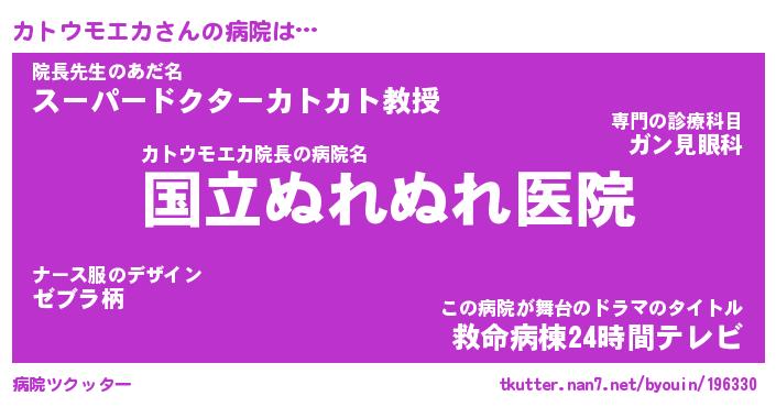 | 肩書あだ名 | 『カトウモエカ社長令嬢』 |