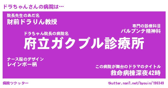 | 2回繰り返すあだ名 | 『ドラドラ』『ドドララ』『おやおや』 |