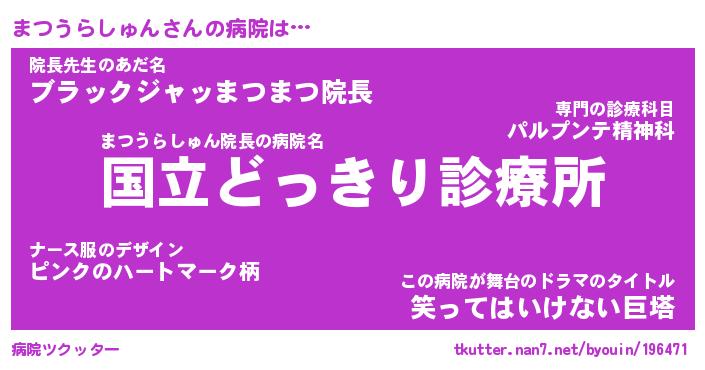 | 伝説のあだ名 | 『伝説のスナイパーまつうらしゅん』 |