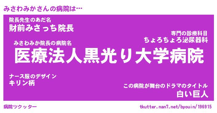 | ヒーロー風カッコイイあだ名 | 『スーパーミサワミカ』『暗黒騎士ミサ』 |