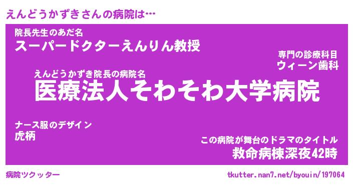 | 胡散臭い通販商品みたいなあだ名 | 『億万長者になれるブレスレット…その名も「えんどうかずき」』 |