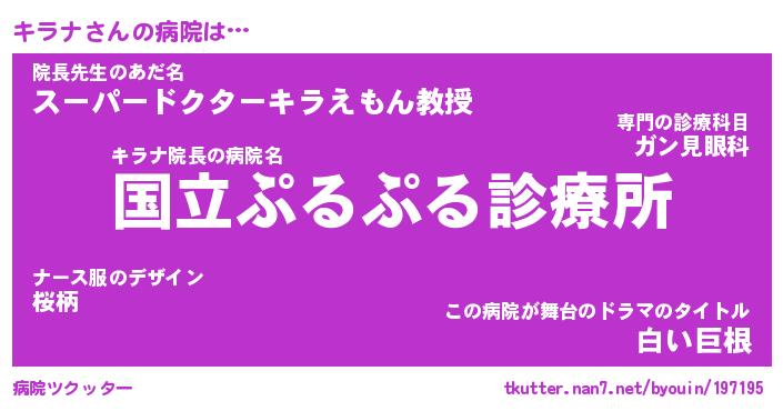 | ヒーロー風カッコイイあだ名 | 『スーパーキラナ』『ウルトラキラナマン』 |