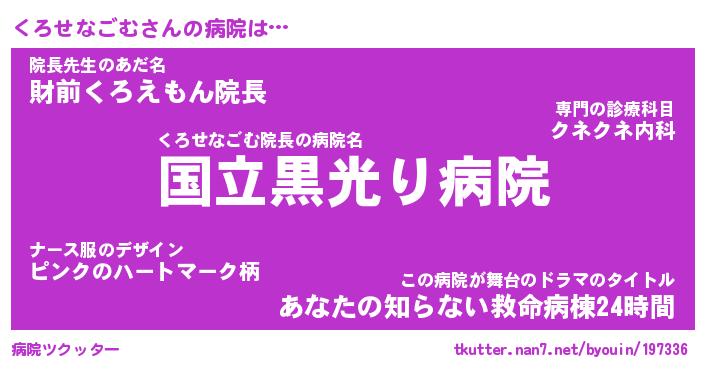 | 2回繰り返すあだ名 | 『くろくろ』『くくろろ』『ぬるぬる』 |