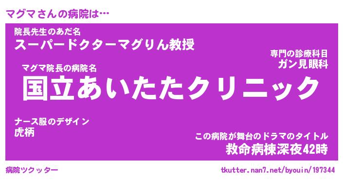 | ヒーロー風カッコイイあだ名 | 『スーパーマグマ』『ウルトラマグママン』 |
