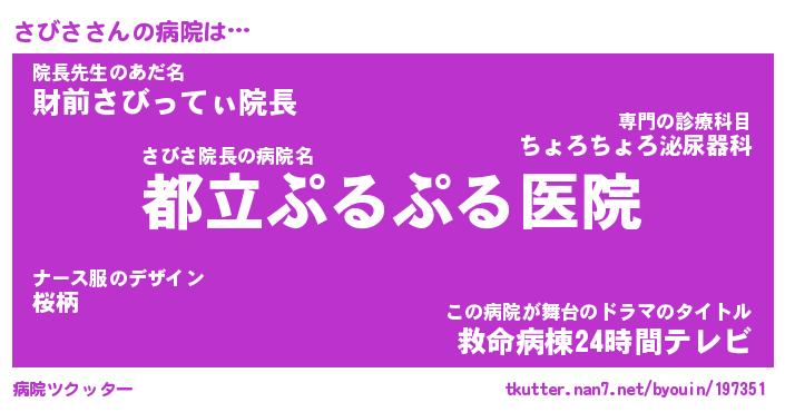 | 2回繰り返すあだ名 | 『さびさび』『ささびび』『ぬれぬれ』 |